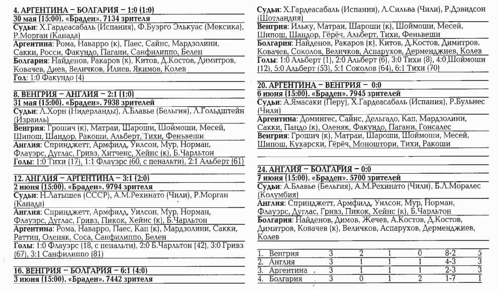Могло быть, наверно, и больше, если б после первой игры в группе Аргентина — Болгария местный мэр настоятельно не посоветовал родителям не пускать детей на такой футбол: «Кроме хамства и грубости, они ничему не научатся».