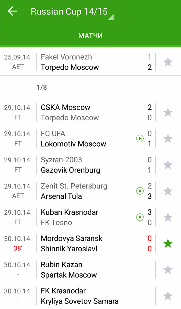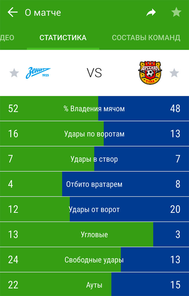 - Приложение должно быть максимально информативным. Обязательно наличие текстового онлайна, звукового сопровождения событий, различной статистической информации. Видео голов и опасных моментов – как дополнительный бонус.