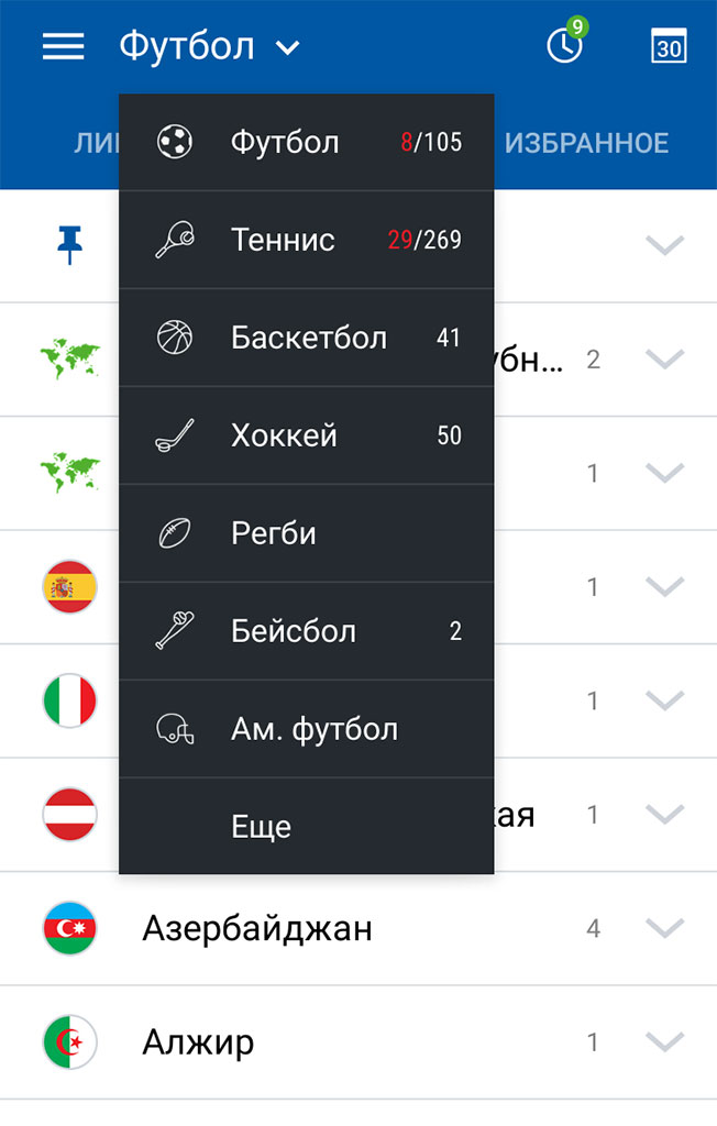 Конечно же в программе представлены все текущие таблицы и список лучших бомбардиров каждого турнира. И это только о футболе! Помимо «Спорта № 1», приложение «LiveScore» предоставляет своим пользователям всю информацию по хоккею, баскетболу, теннису, гандболу, бейсболу, регби, американскому и австралийскому футболу, водному поло, футзалу, волейболу, снукеру и дартсу.